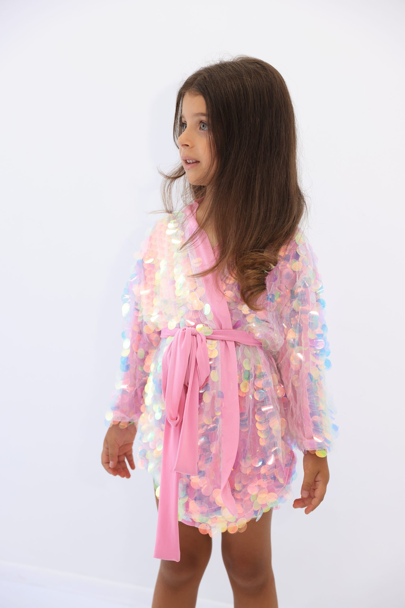 İçi astarlı payet kumaş, İmitasyon devekuşu tüyü otriş. Taç ile birlikte settir.