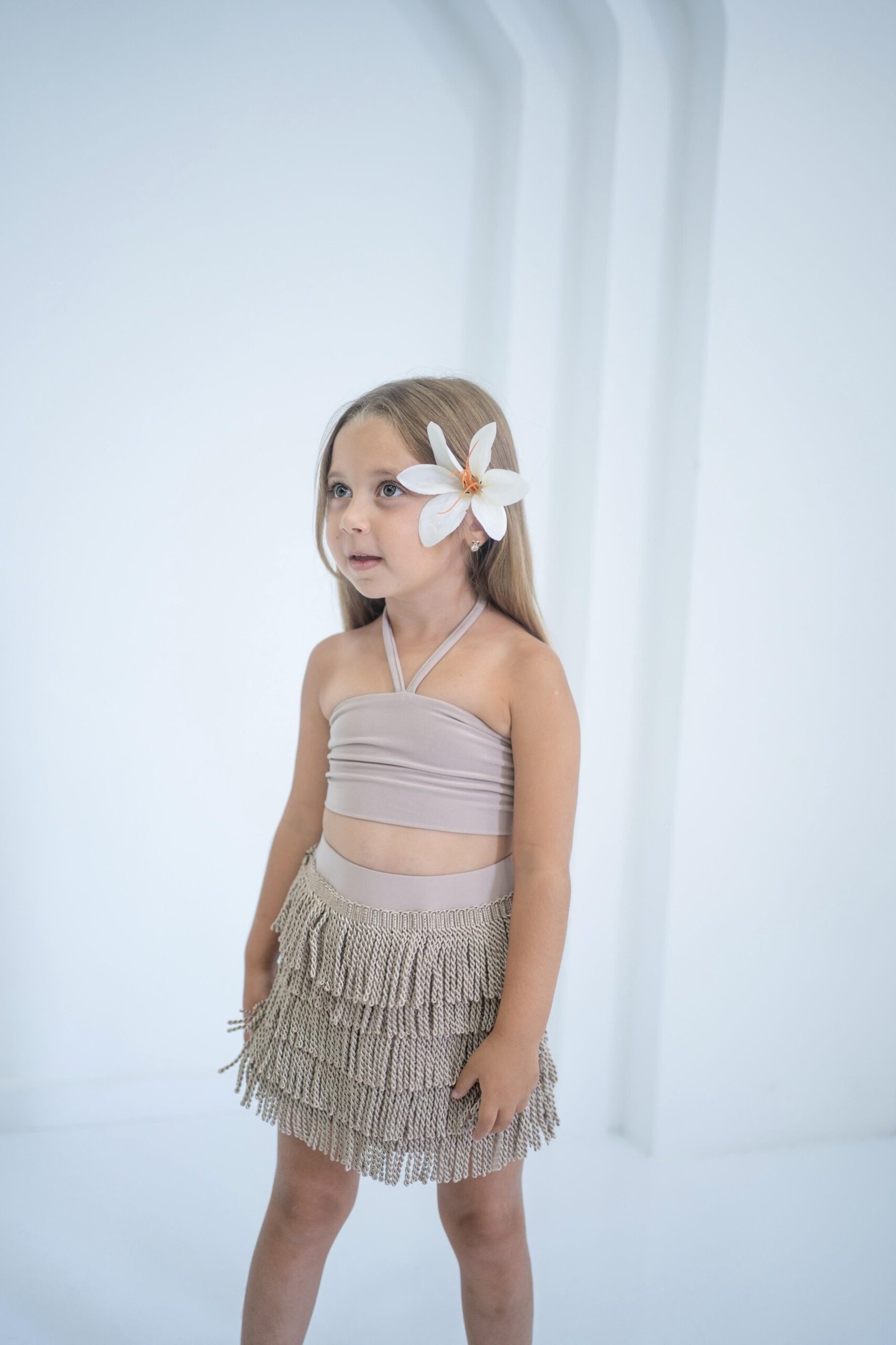 saçak ip detaylı esnek sendy kumaş ikili takım
